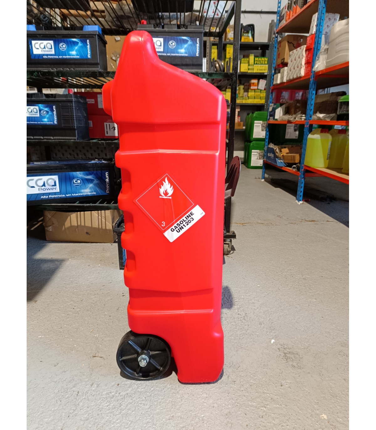 El carro portátil de gasolina Cemo de 53 litros es la solución perfecta para el transporte seguro y eficiente de combustible. Fabricado en polietileno de alta densidad, este depósito cuenta con robustas ruedas de 6 pulgadas que facilitan su movilidad incluso en terrenos difíciles. Equipado con una bomba manual de 7,5L/min, una pistola manual y una manguera distribuidora de 3 metros, garantiza un suministro rápido y controlado de gasolina. Su diseño incluye un cierre a prueba de derrames, y no requiere pasar revisiones periódicas. Además, cumple con la homologación UN, asegurando su conformidad con la normativa de transporte de combustible. Sus medidas compactas de 87x42x33 cm permiten un almacenamiento y manejo sencillo.