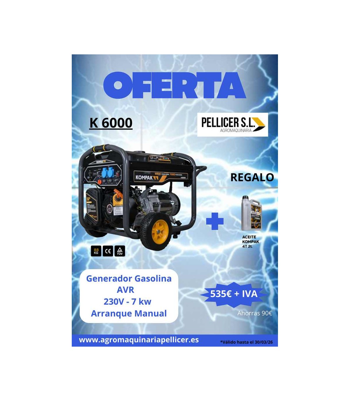 *Generador en ¡OFERTA!. Precio generador 737,67€, ofertado en 647,05€. Válido hasta el 30/3/2026.