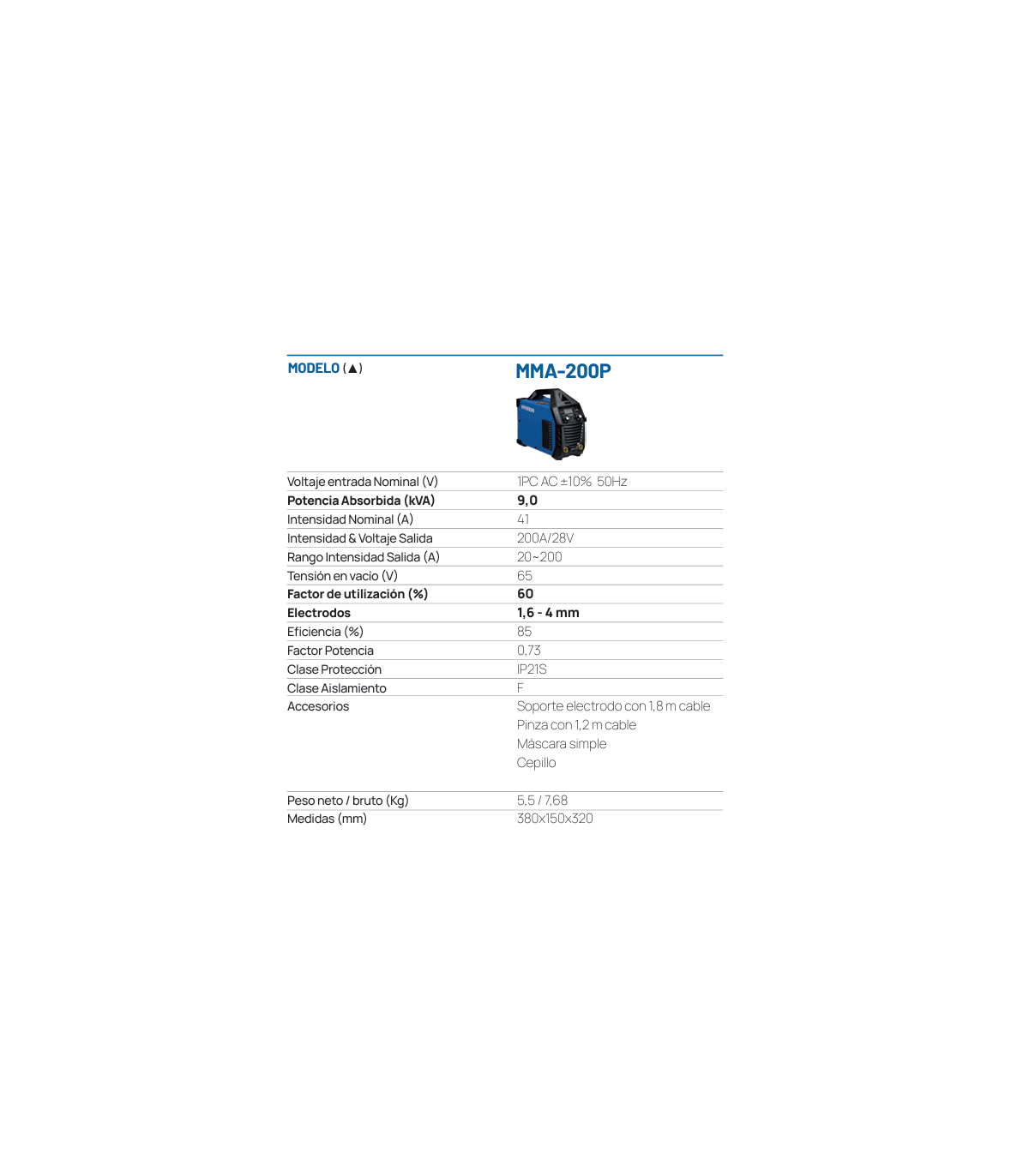 - INTENSIDAD VOLTAJE DE SALIDA 200A/28V