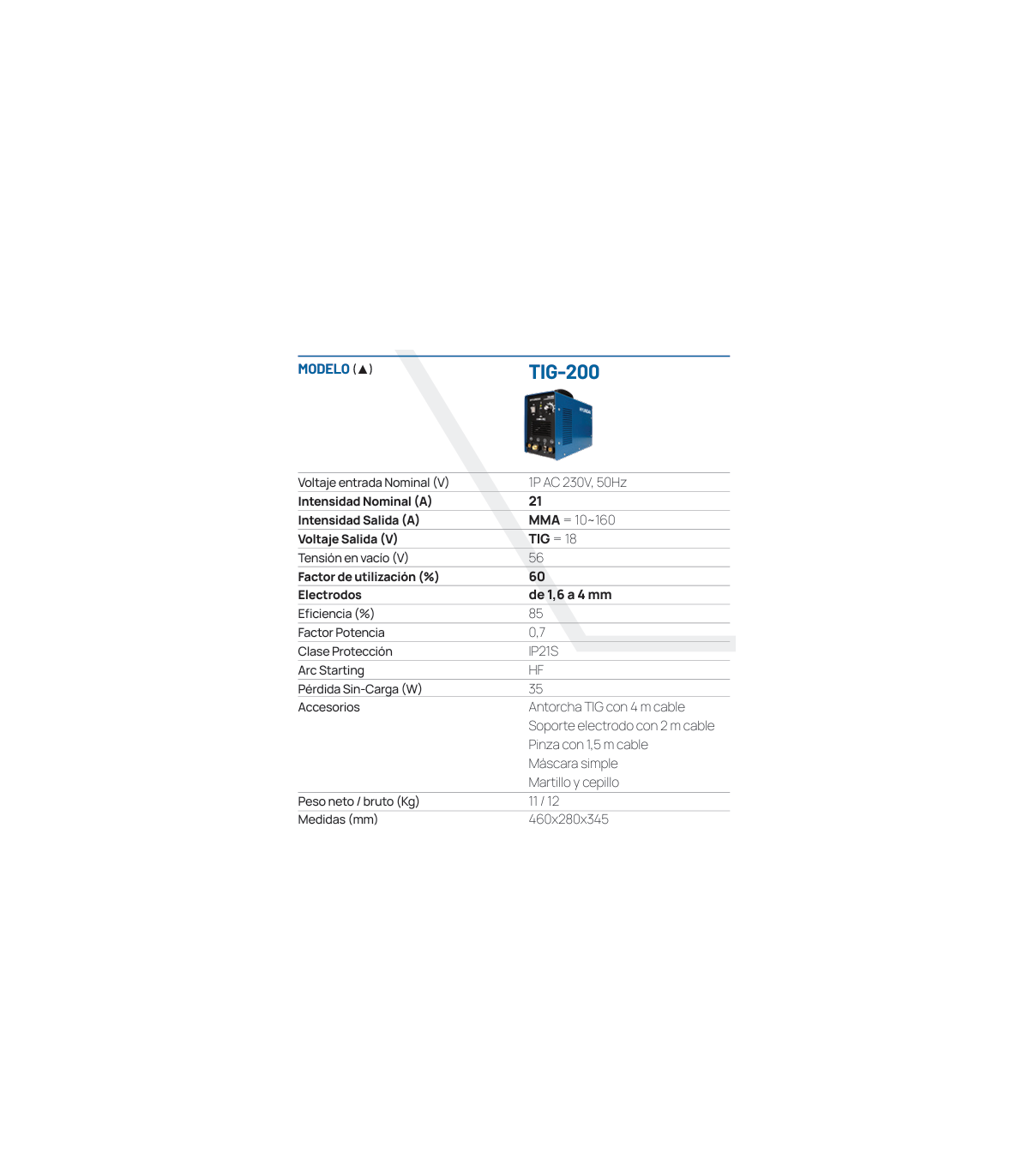 - VOLTAJE SALIDA (V) TIG = 18