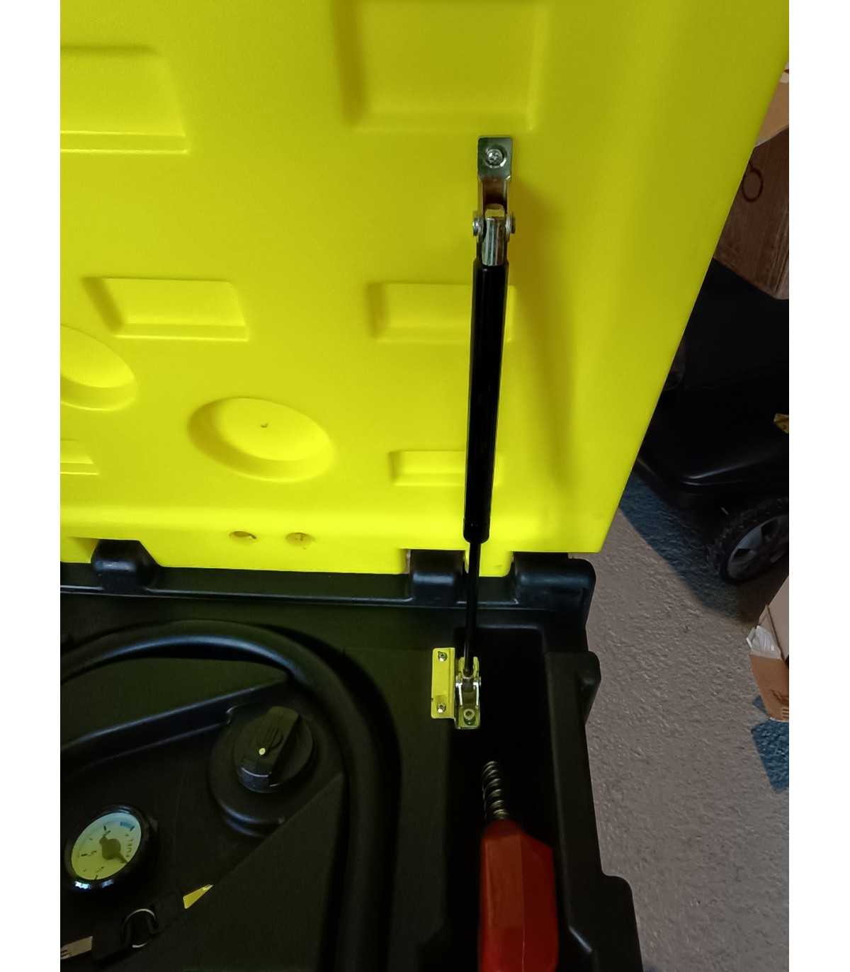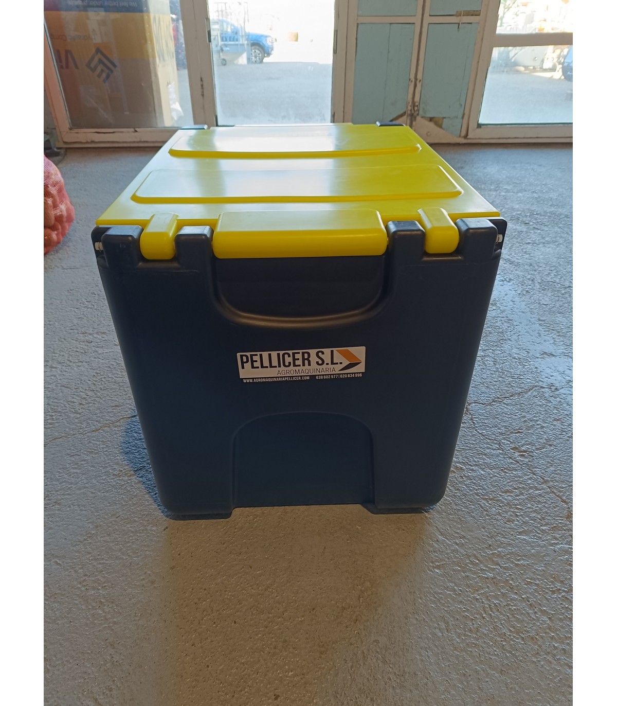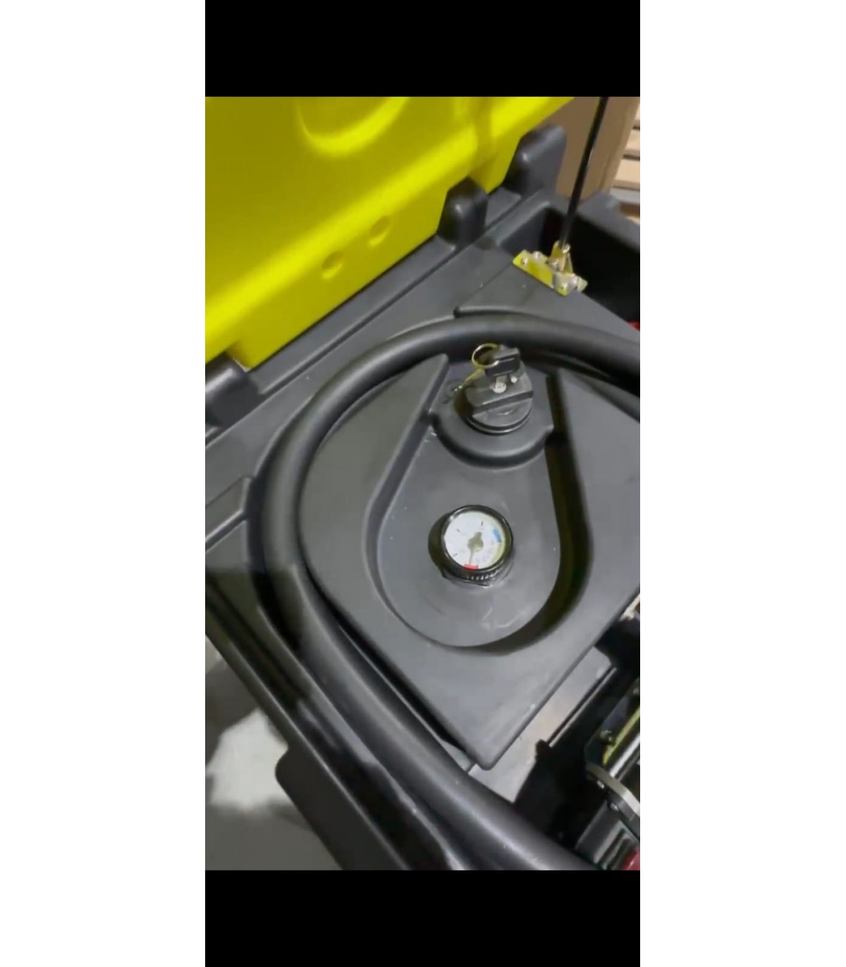Equipado depósito de la marca AGRITEK, con una capacidad de 200 litros, tapa con bombín incluido, pistola automática con una manguera de 5 metros de longitud, cable con pinzas de 4 metros de longitud, indicador de nivel y llave para cerrar el depósito. Hendiduras integradas en la carcasa del depósito para su traslado con transpaleta.