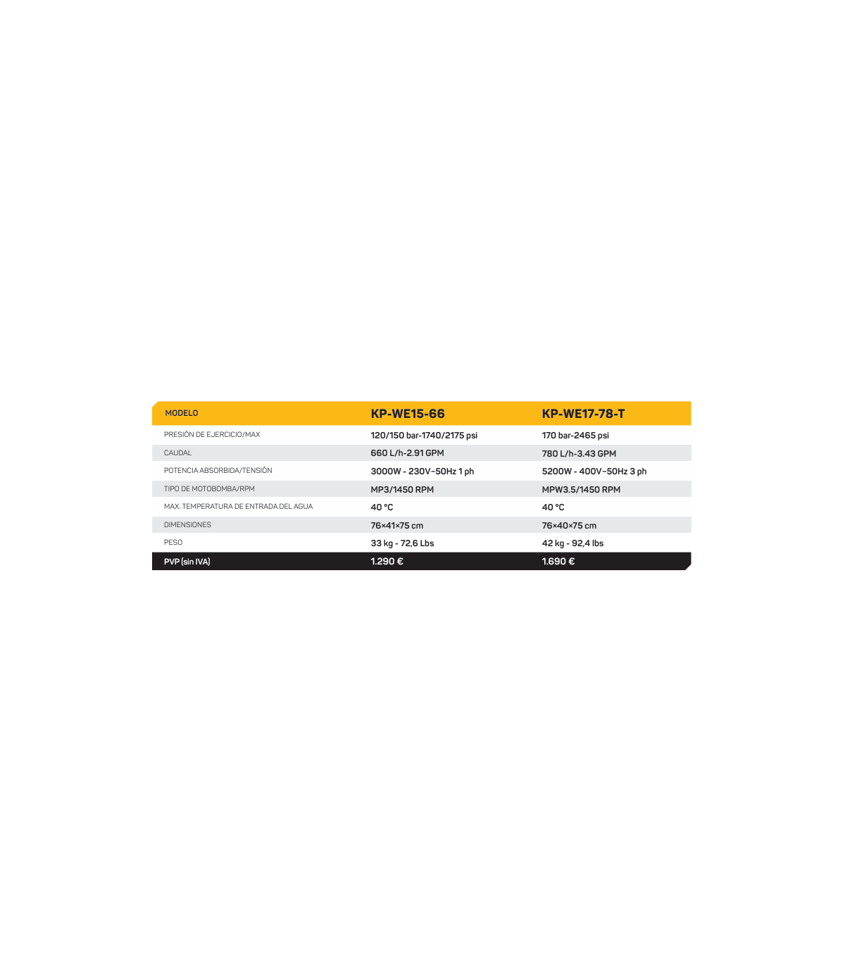 **Posibilidad de adquirir la máquina KP-WE17-78-T de 170 bar de presión.