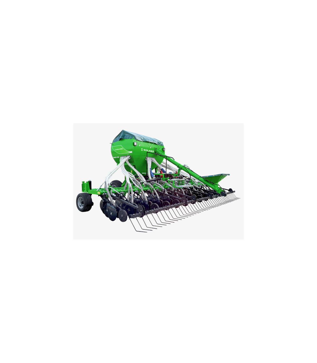 La gama de sembradoras neumáticas SNE-D y SNE-B está disponible con anchos de trabajo de 3 a 6 metros, y con separación de brazos a 12,5 cm. Para enterrar el grano, se monta con un sistema de regulación de profundidad de trabajo sobre paralelogramo fijo (con nivel de burbuja para el aplomo) y de ruedas laterales en algunos modelos. Los modelos SNE-D se fabrican con discos montados en 2 filas (ruedas compactadoras en opción), y los modelos SNE-B con bota-patin montados en 2 filas.