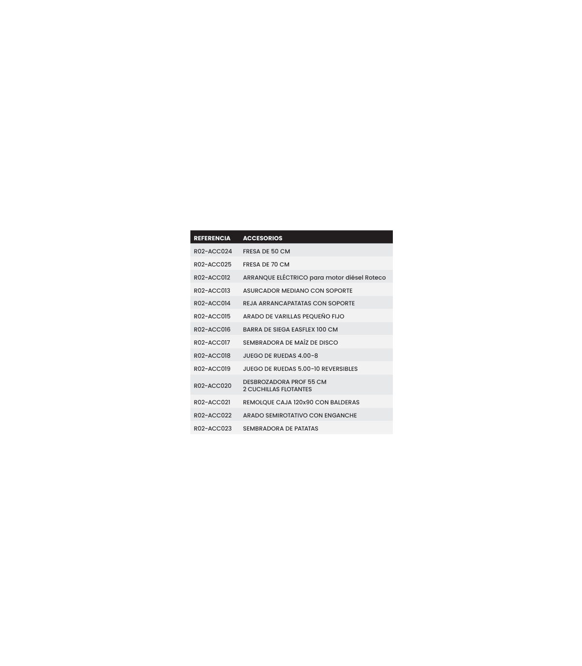 - FRESA (NO INCLUIDA) (VER TABLA ACCESORIOS)