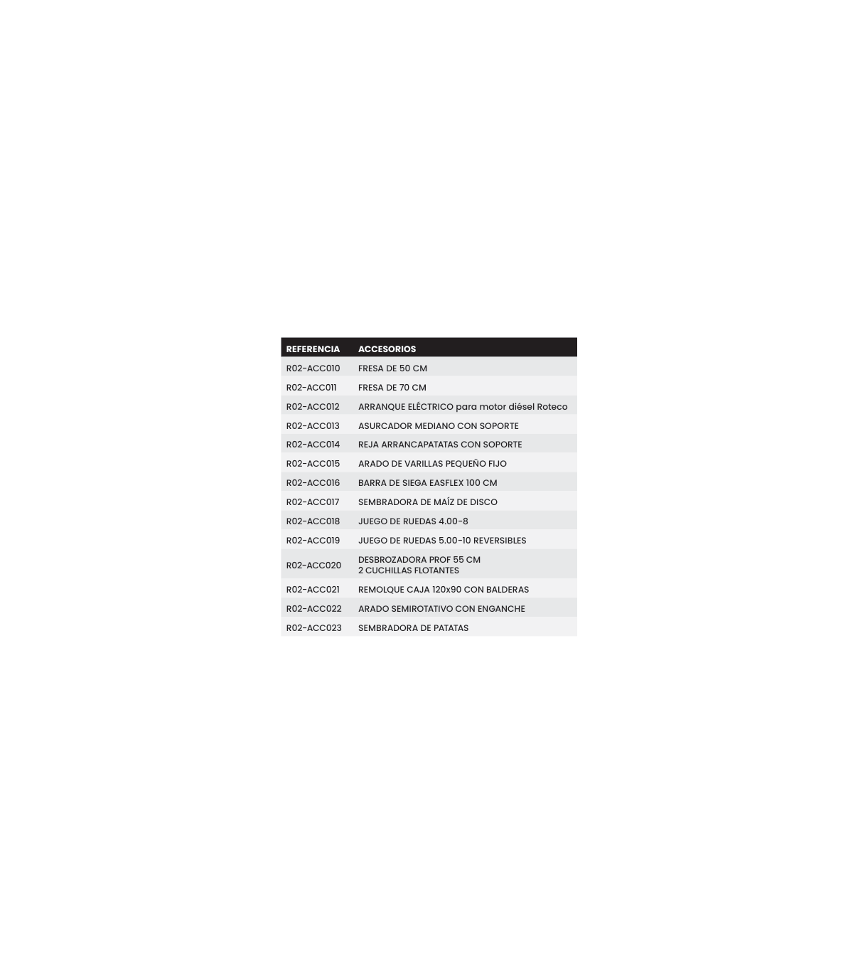 *Motocultor multifunción HARDY "XL" (características), Motor: gasolina roteco 212 cc 7 hp, Transmisión: Engranajes en baño aceite, Velocidades: 6 (3+3), Embrague: Activo EasyForce, Fresa: No incluida (Ver tabla de accesorios), Filtro de aire: Baño de aceite, Ruedas: Rueda reversible de serie.