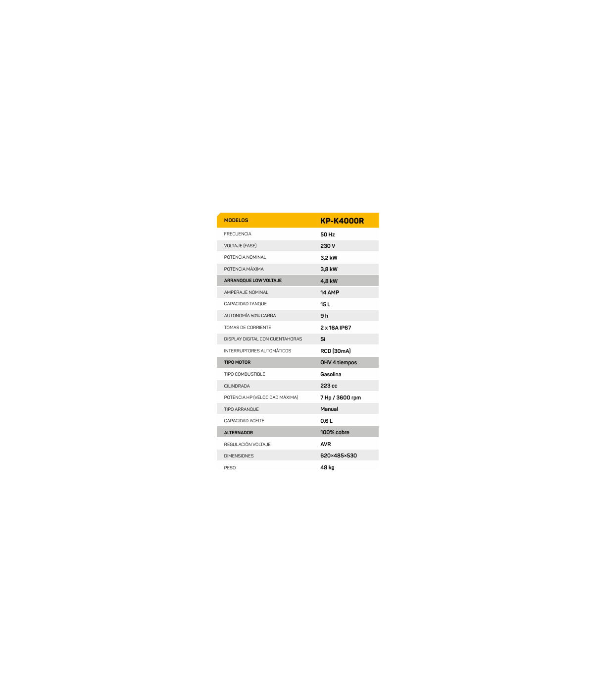 Motores 4 tiempos kompak equipado: con alarma de bajo nivel de aceite con paro automático del motor. Válvulas en cabeza ohv refrigerado por aire. Alternador 100% cobre equipado con avr. Arranque fácil. Bajo mantenimiento y consumo. Cuenta horas digital. Kit ruedas incluido en todos los modelos.